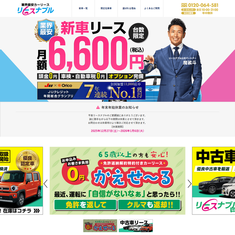 - 申込数30万人突破!業界最安水準のカーリースで初めての方にもおすすめ